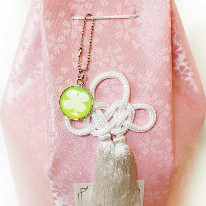 【 仏具 】骨壷カバー用 アクセサリーチャーム プレート クローバー グリーン ストラップつき