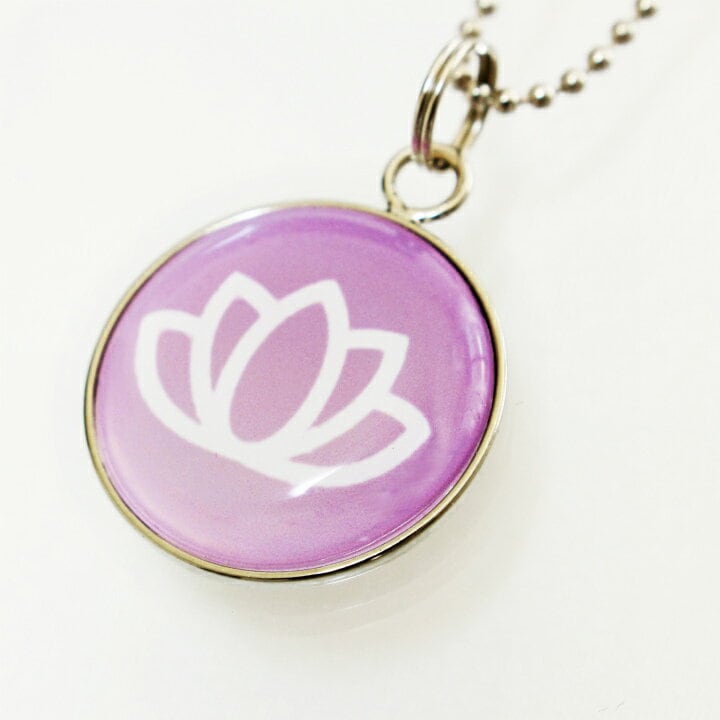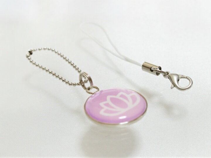 【 仏具 】骨壷カバー用 アクセサリーチャーム プレート 蓮 ロータス 紫 パープル ストラップつき