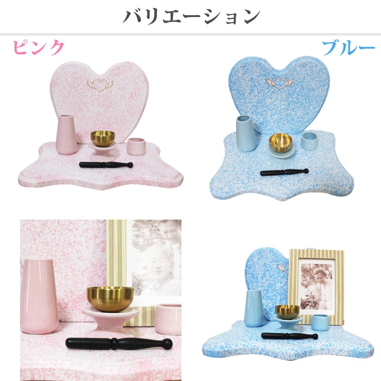 【 ミニ仏壇 】【 仏壇 & 仏具セット 】 仏壇 ハートステージ エンジェルハート ミニ仏具 3点セット おりん こりん& フォトフレーム つき