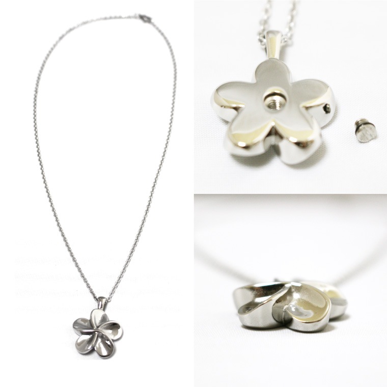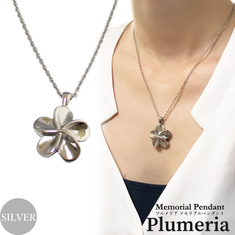 遺骨ペンダント ステンレスチェーン ハワイアン プルメリア メモリアルペンダント 専用巾着袋