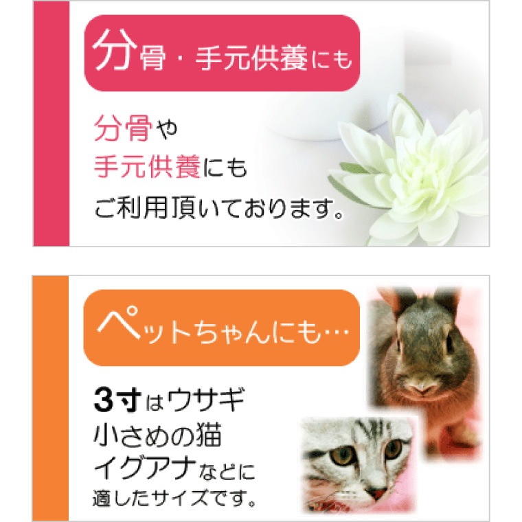 ペット骨壷としては、ウサギ・小型猫などに適正なサイズです。