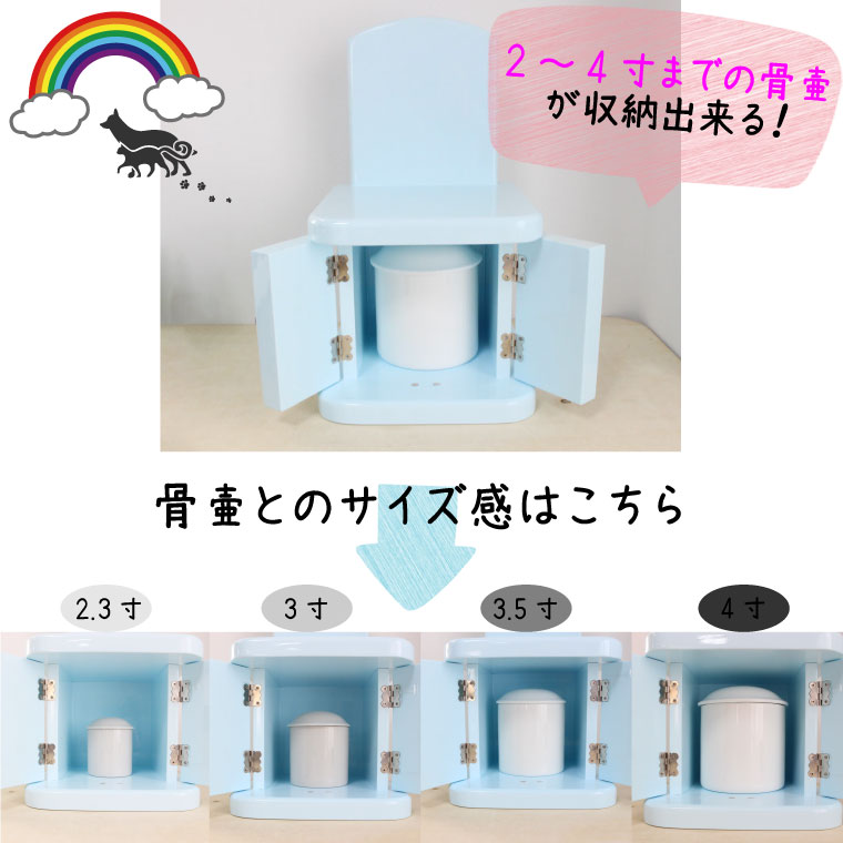可愛いパステルカラーの木製キャビネット型のペット仏壇。
