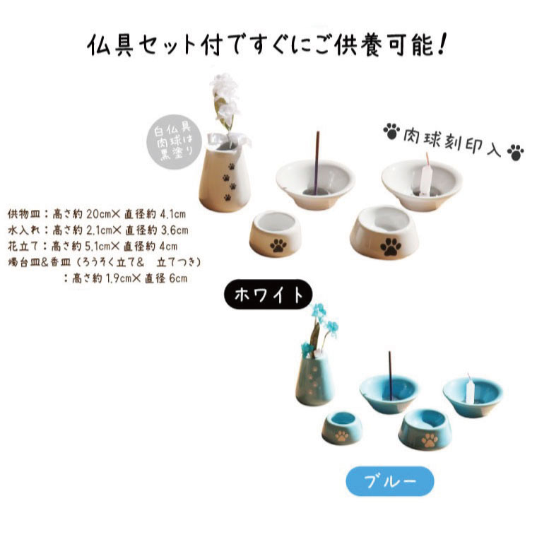 | コンパクトで薄型、かわいい屋根の形のハウス型ミニ仏壇です。 L判フォトフレーム付きで、縦横両用でお使いいただけるので、かわいい写真を選んで飾っていただけます。 ☆大切な人を失ったあなたへ☆ 供養の方法は、人それぞれです。世界中にいろいろな宗教があるように供養の方法も星の数程あります。大切なのは、あなたが亡くなった方への感謝の想いひとつです。 あの子を身近に感じながらいつも一緒に。沢山ご供養してください。 仏壇サイズ:W26.8×H27.5×D10.4cm 重量:約1,080g 供物皿:高さ約20cm×直径約4.1cm 水入れ:高さ約2.1cm×直径約3.6cm 花立て:高さ約5.1cm×直径約4cm(口径:2.6cm) 燭台皿&香皿(ろうそく立て&香立てつき):高さ約1.9cm×直径6cm ろうそく立て、香立ては取り外し可能です。 おりんサイズ:直径4.5cm 肉球マット:幅約8.5cm×縦約6.7cm×厚み約4mm りん棒:10.5cm 画像内の骨壷はイメージです。セット内容には含まれませんのでご注意ください。 |