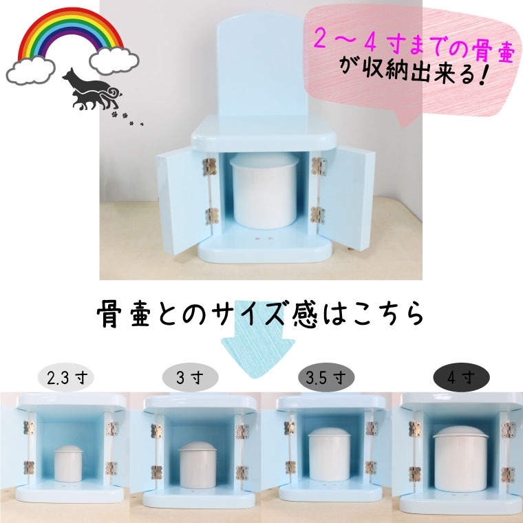 ペット仏壇 セット キャビネット パステルカラー 背面取り外し可能 4寸までの骨壷収納 肉球刻印入り 仏具8点 肉球 コルクマット おりんセット ペット供養 メモリアル かわいい ミニ仏壇