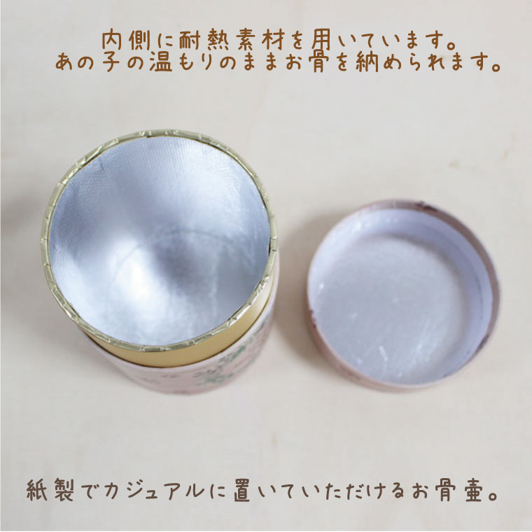 内側に耐熱素材を使用しておりますので、あの子の温もりのまま納めることが可能です。