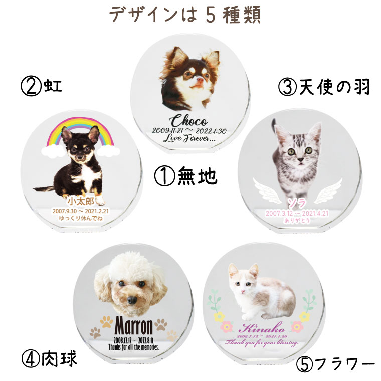 大好きなあの子の写真が位牌や遺影の代わりになります。 可愛いサークル型の自立するお位牌デザインです。