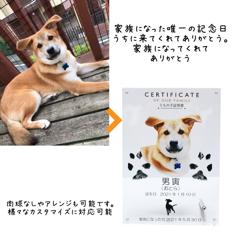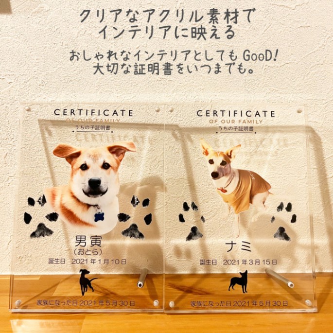 ペット位牌 うちの子証明書 メモリアル フォトフレーム アクリル製 2Lサイズ オーダーメイド あの子の足あと シルエット 家族 ペット供養