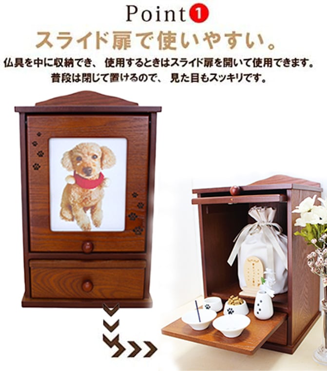 大切なあの子のために。 写真と骨壺を収められるメモリアルハウスとなっております。