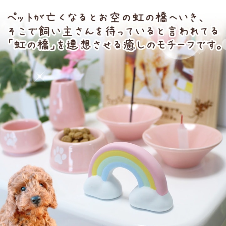 【虹のたもとで待っててね】 亡くなったペットちゃんは、お空に上がった後、家族と再開するために「虹の橋」と呼ばれる虹のたもとで待っていると言われています。