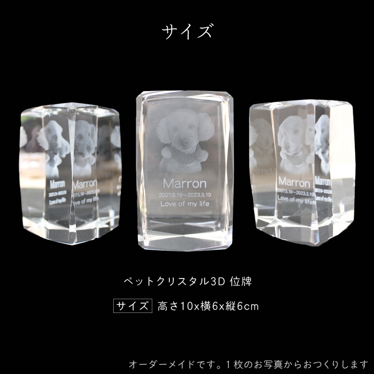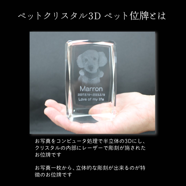 ペット位牌 クリスタル位牌 3D キューブ型 ペット位牌 ペット供養 180° 半立体 オーダーメイド