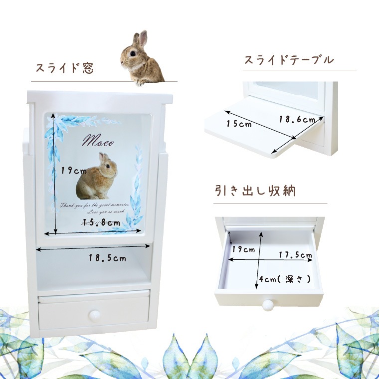 ペット 仏壇 6寸骨壷 対応 手元供養 オーダーメイド オリジナル デザイン シンプル スライド扉 窓 引き出し付き ホワイト メモリアル仏壇 家具調 骨壷が見える